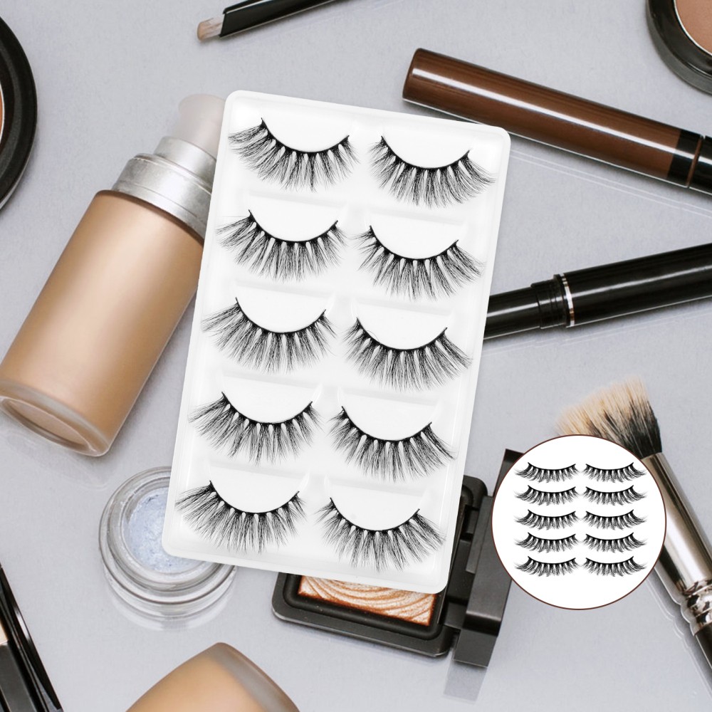 5 Pair 3d False Eyelashes Reusable Natural Look Thick Artificial