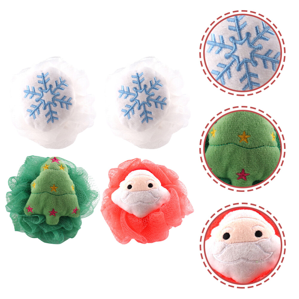4 Pcs Christmas Loofah Child Bath Balls for Women Bathing Accessories